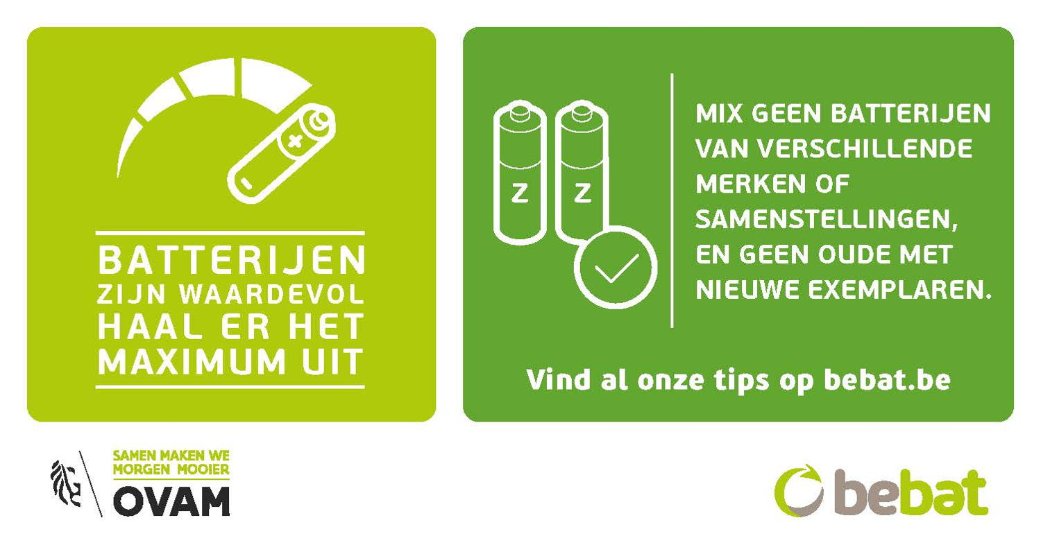 De belangrijkste tip is uiteraard om geen batterijen weg te gooien die nog niet helemaal leeg zijn. Vaak kunnen batterijen die niet meer werken in een toestel dat veel spanning vraagt, nog wel een tijdje gebruikt worden in een ander toestel zoals de keukenweegschaal, omdat die weinig spanning nodig heeft. De Vlamingen kunnen nu met een batterijtester testen of hun batterij echt helemaal leeg is alvorens ze naar een Bebat-inzamelpunt te brengen.